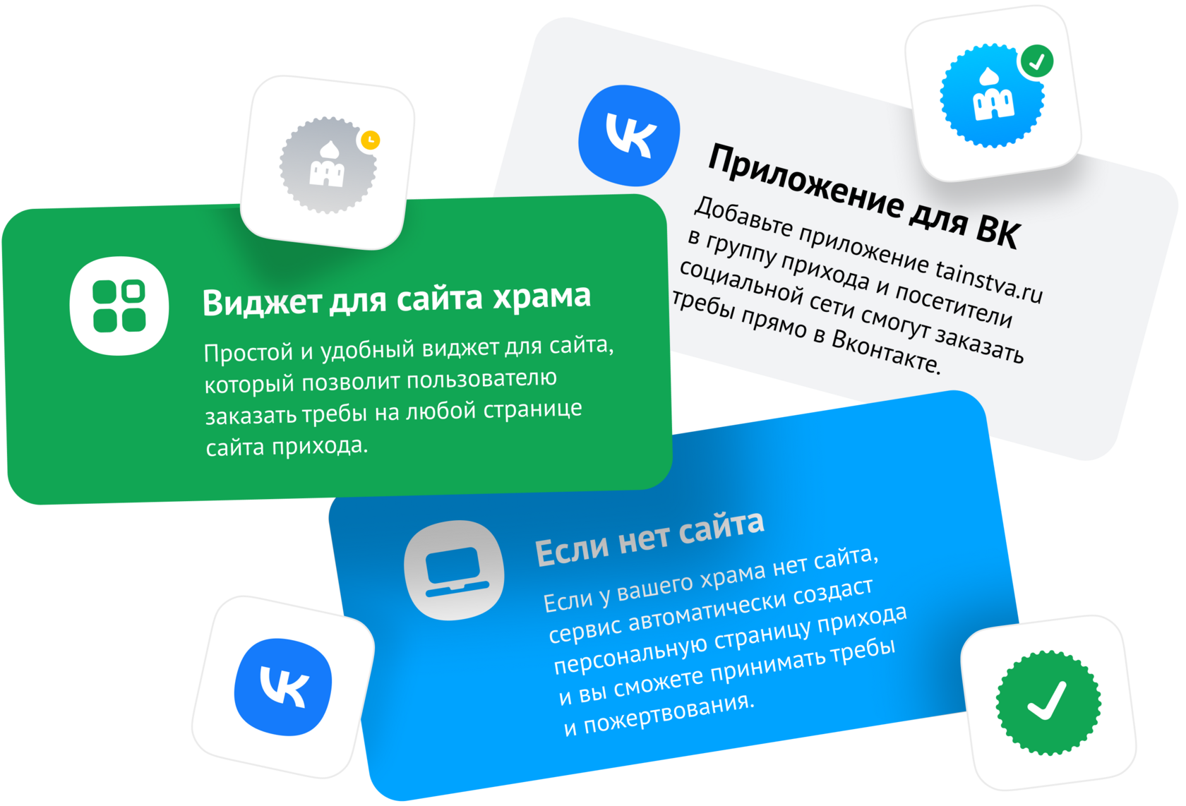 - в группу прихода Вконтакте, чтобы пользователи смогли подать записки прямо в ВК;
